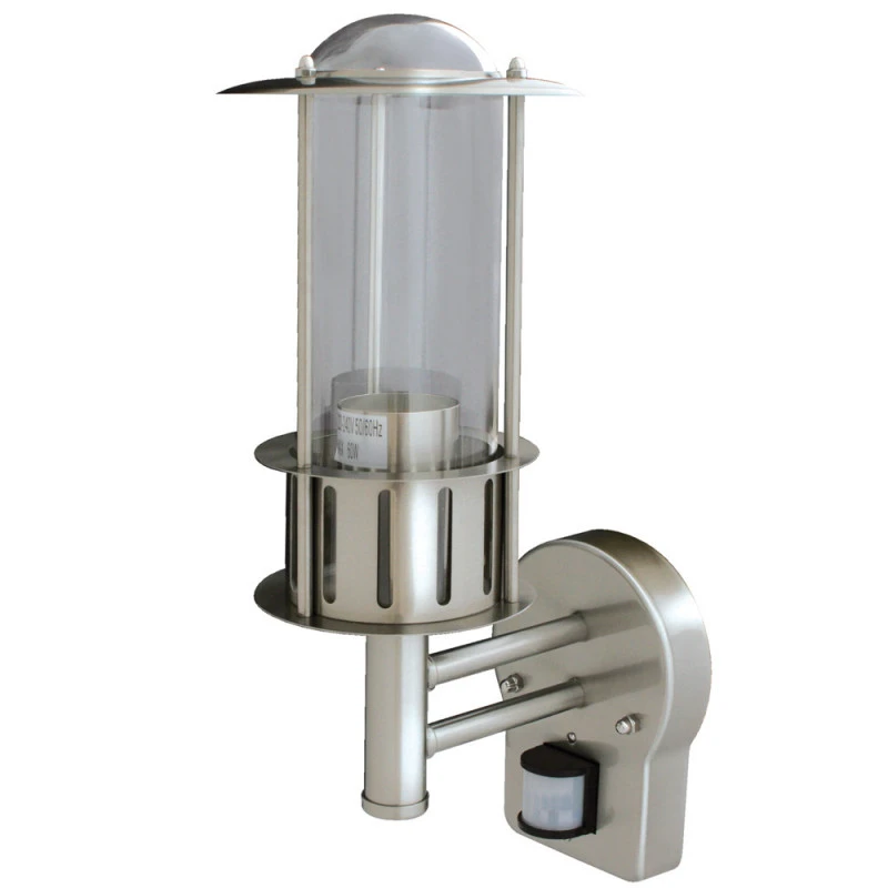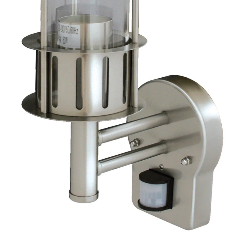 Éclairage extérieur avec détecteur, style contemporain. En inox, cette applique en alu montante apportera à votre allée ou terrasse une lumière efficace ou chaleureuse. Ampoule non fournie.