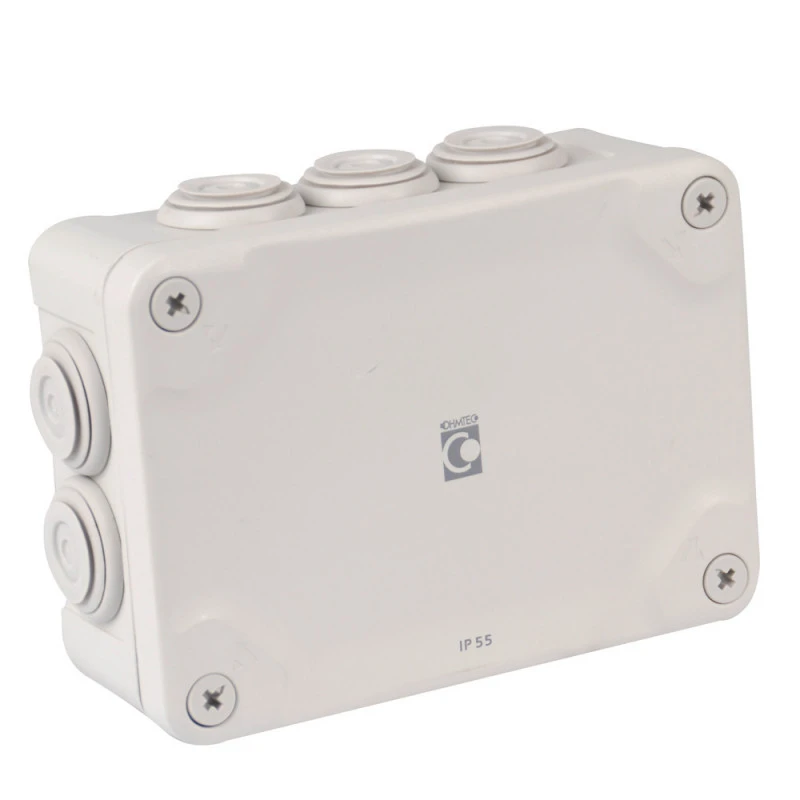 Boîte de dérivation étanche avec passe-fils à gradins en membranes souples.