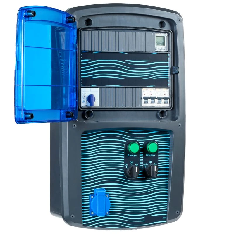 - La programmation de votre filtration et/ou de votre pompe à chaleur avec une horloge électronique pour une programmation adaptée à vos besoins et un sélecteur en façade de coffret pour un confort d’utilisation.