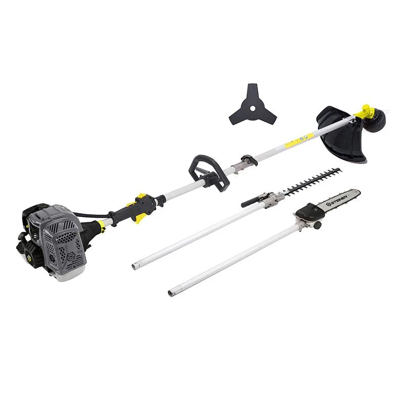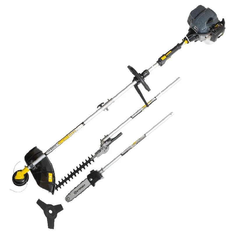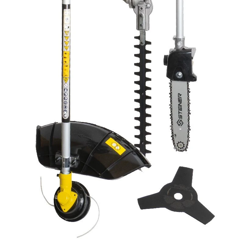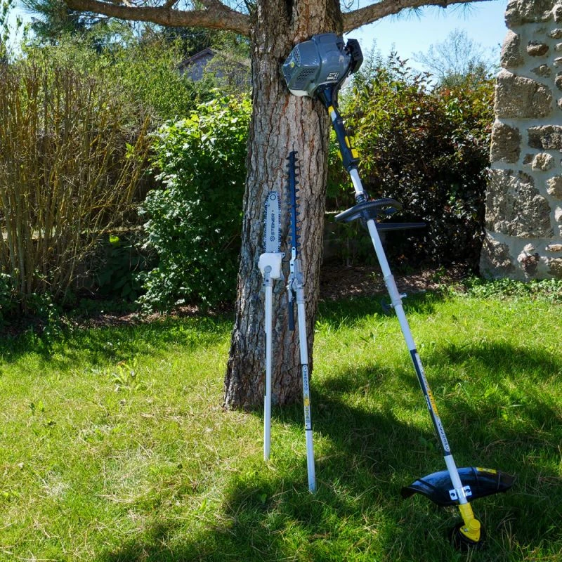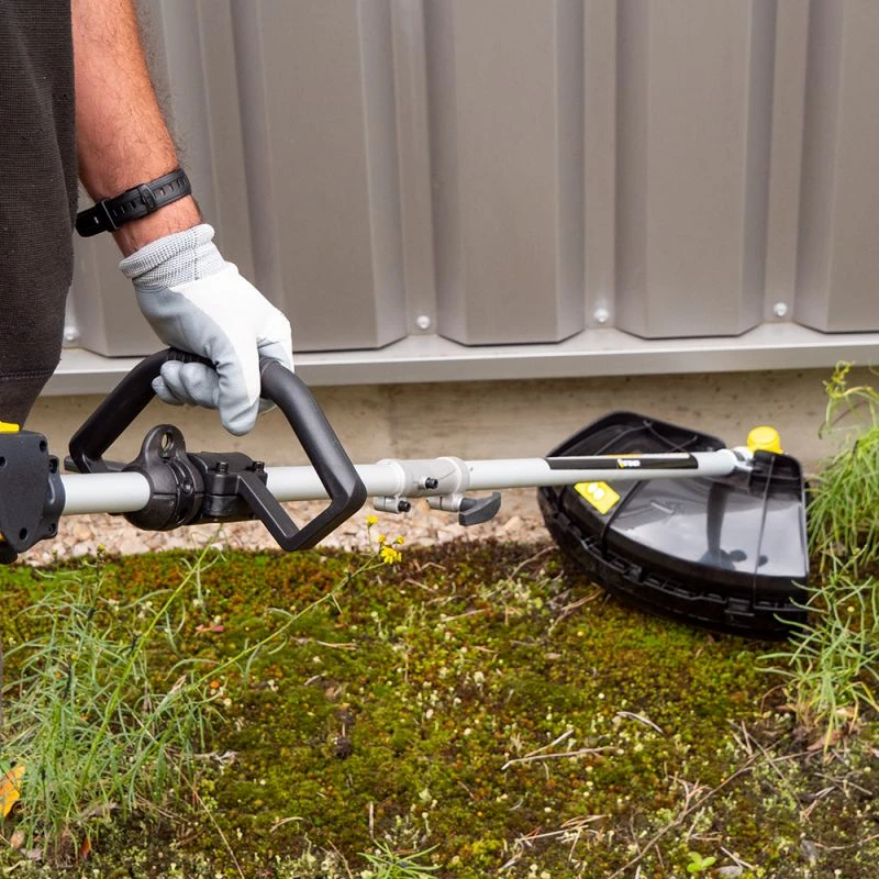 Débroussailleuse 4 en 1 pour répondre à tous vos besoins dans vos utilisations. Très polyvalente, vous pouvez choisir la tête de coupe qui correspond le mieux à votre tâche : lame 3 dents, tête de coupe tap and go Ø440mm, bras de taille-haie, perche élagueuse….