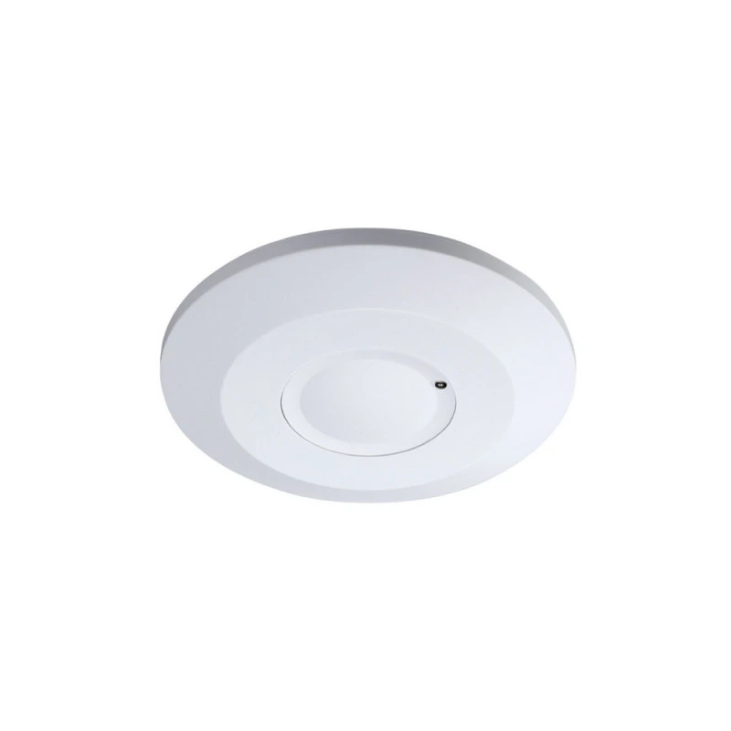 Ce détecteur de mouvement intérieur HF est un commutateur permettant des économies d’énergie. Il envoie des ondes électromagnétiques à hautes fréquences et réagit sur les ondes réfléchies par les surfaces rencontrées. Le détecteur se déclenche lorsqu’une personne entre dans le champ de détection (le champ de détection dépend de la sensibilité choisie) et il active le luminaire après détection, celui-ci s’éteint après que le temps réglé se soit écoulé suite à la dernière détection (de 10 sec. à 12 min.). Il n’est pas à exclure que les mouvements soient détectés à travers les portes, les vitres et les parois de faible épaisseur.