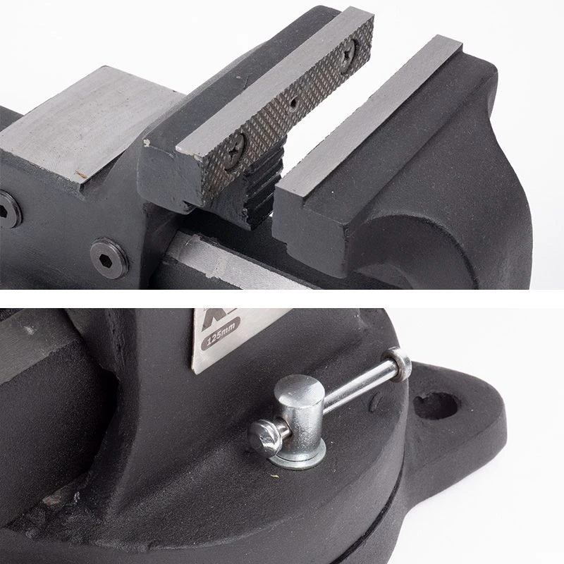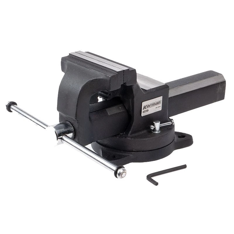 Étau d’établi KORMAN, doté d’une mâchoire avec mors interchangeables de 125mm, permettant le serrage de grosses pièces grâce à son ouverture jusqu’à 160 mm. Corps robuste intégralement en acier trempé, glissière de précision, enclume de frappe et mâchoires de maintien de tube intégrées à la structure. Fixation par 3 points d’ancrage de la base tournante ajustable sur +/- 45°.