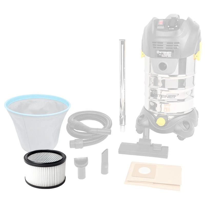 Aspirateur Eau Et Poussières 30L Inox 1400W Avec Prise Intégrée STEINER