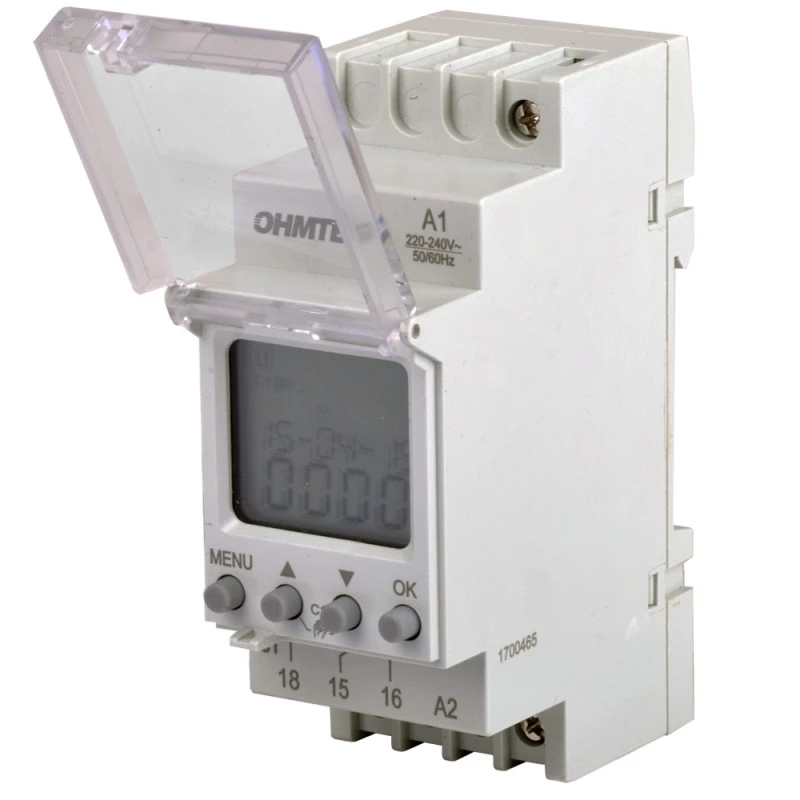Cette horloge digitale programmable OHMTEC est un dispositif servant à la mise en route automatique de produits électriques ou à leur arrêt à un instant donné, via une programmation par créneau horaire ou une durée de fonctionnement. Cette horloge a un mode vacances (Interruption programmable par date et année). Cette horloge digitale programmable OHMTEC peut être complétée par un contacteur de puissance, pour commuter des produits de fortes puissances.