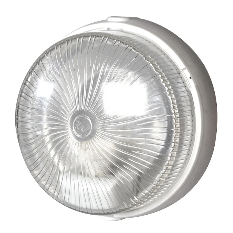 Hublot extérieur rond blanc, idéal pour éclairer le patio, la terrasse ou le garage. Installation en plafonnier ou applique murale. Luminaire extérieur simple, économique et efficace.