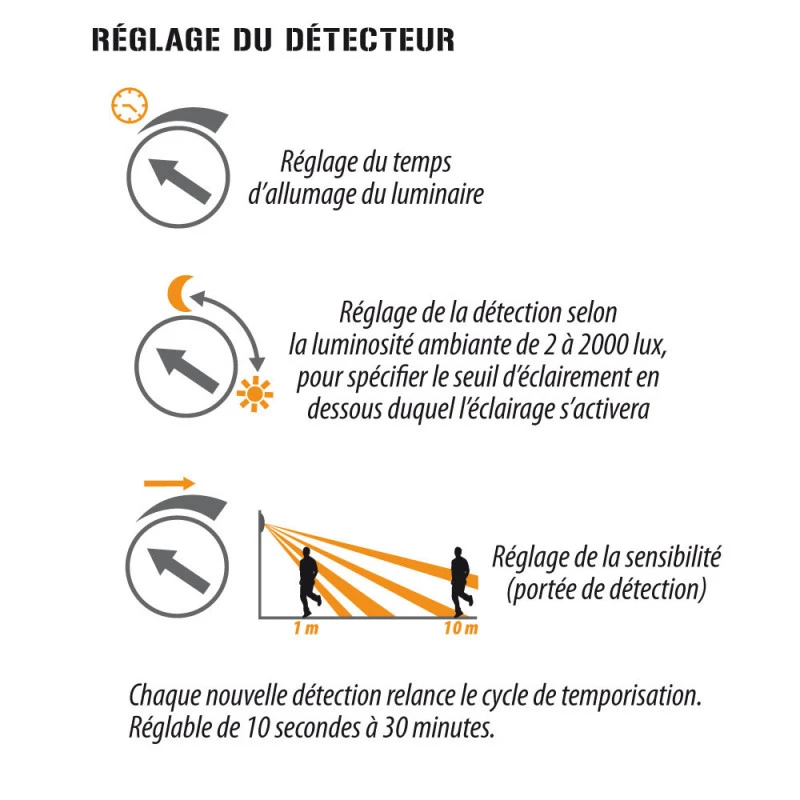 – Réglage de la luminosité de 2 à 2000lux