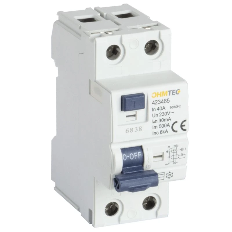 Interrupteur différentiel 40A 1P+N type B OHMTEC. Conforme à la norme EN 61008-1.