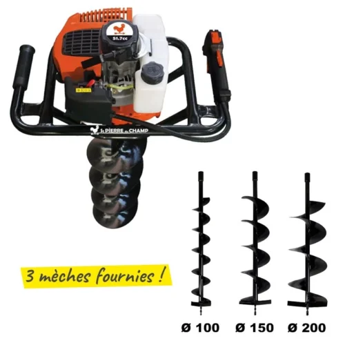 Tarière Thermique 51.7CC + Lot De 3 Mèches ST PIERRE DU CHAMP
