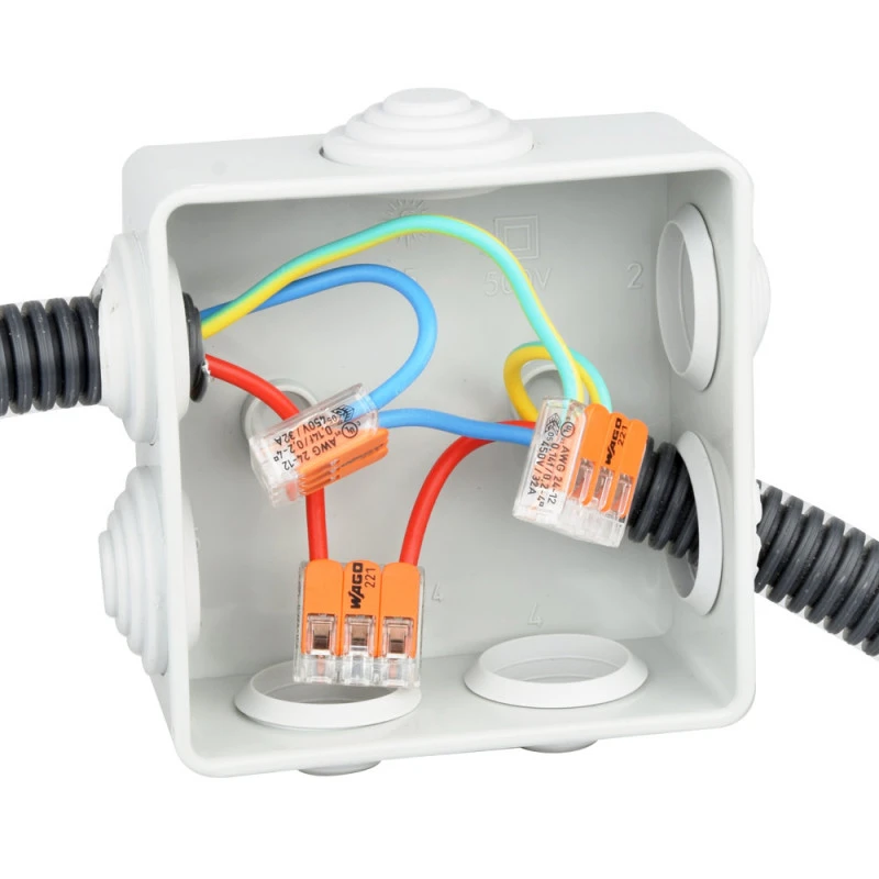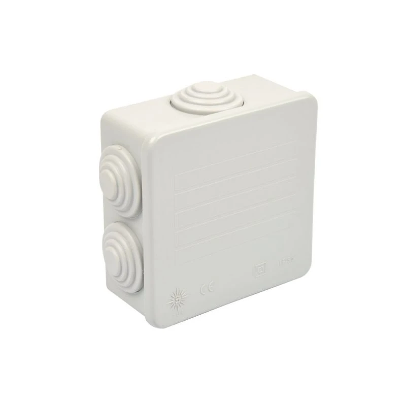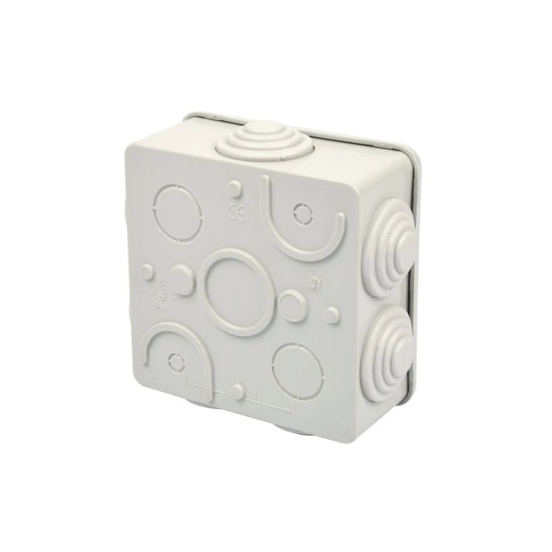 Boite de dérivation étanche carré.7 entrées sectionnables à membranes souples. Capot clipsable.