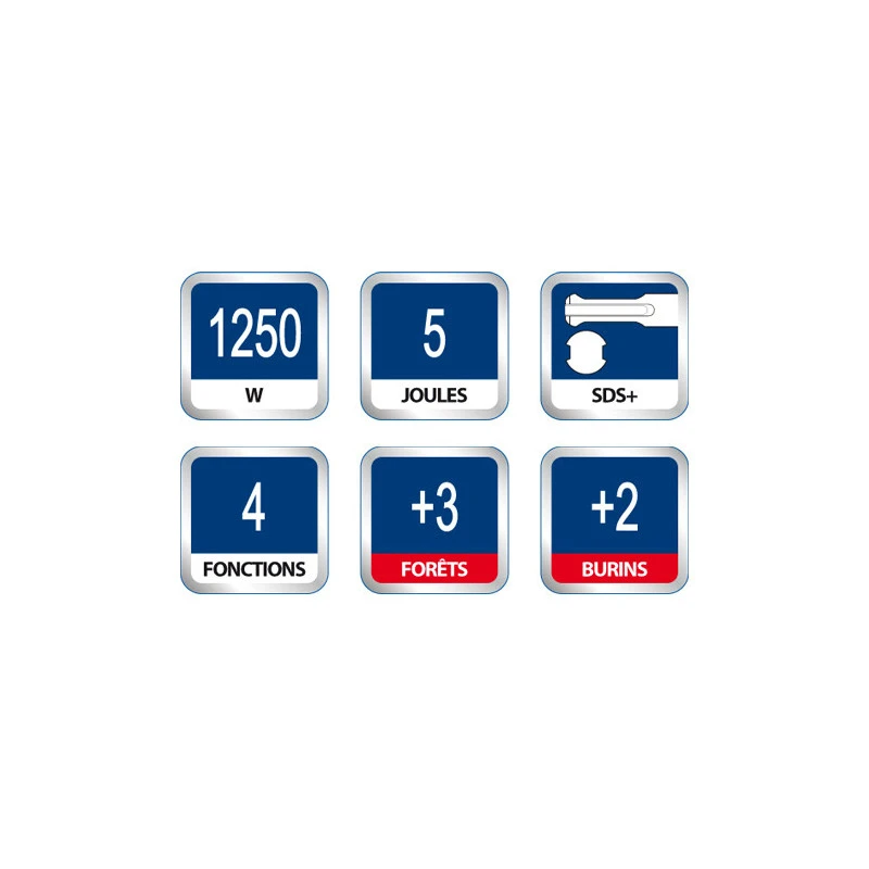 - Accessoires– 3 forets béton 8/10/12 mm