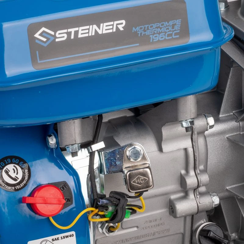 Par sa mobilité la motopompe Steiner 500398 à essence sera la plus adaptée à tous vos travaux agricoles ou d’évacuations d’eau qui requièrent un fort rendement.