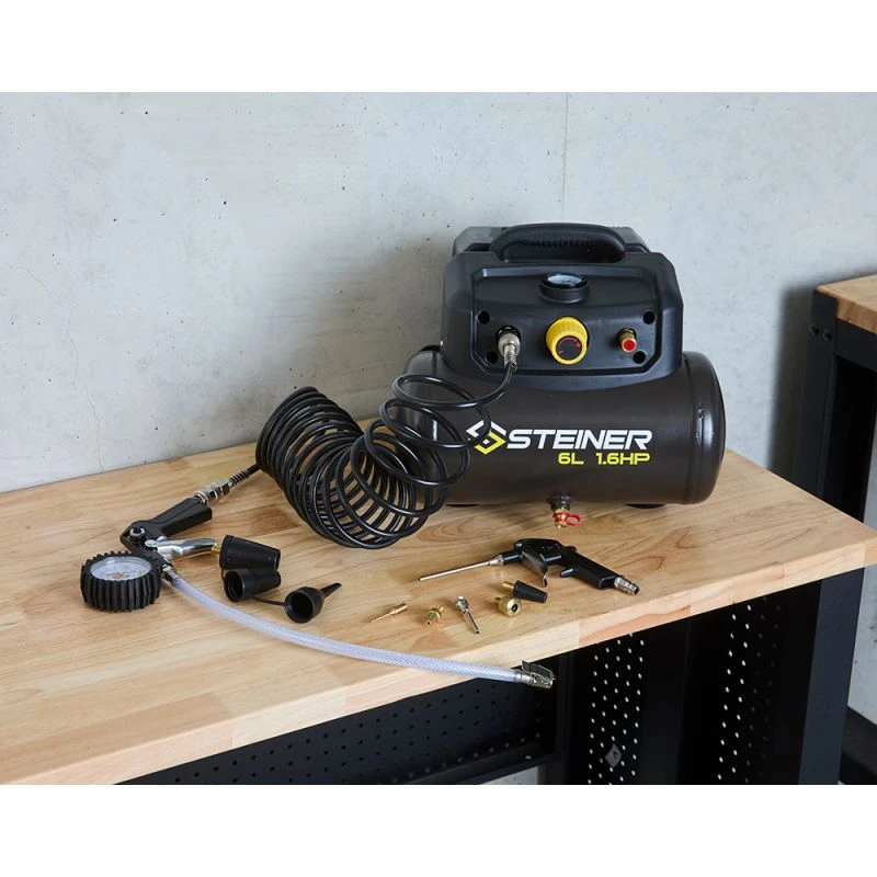 Associé au compresseur portable 6L et son kit pneumatique de 12 pièces vous pourrez effectuer vos réparations et entretien du quotidien à la maison, au garage ou à l’atelier.