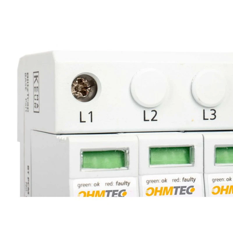 Ce parafoudre triphasé OHMTEC avec cartouche débrochable permet la protection de l’installation électrique contre les courants liés à la foudre. La cartouche de ce parafoudre OHMTEC peut être changée sans toucher au câblage du parafoudre. Un témoin de validation de fonctionnement sur la cartouche est présent en façade sur la cartouche. Le déconnecteur est intégré au parafoudre triphasé OHMTEC.