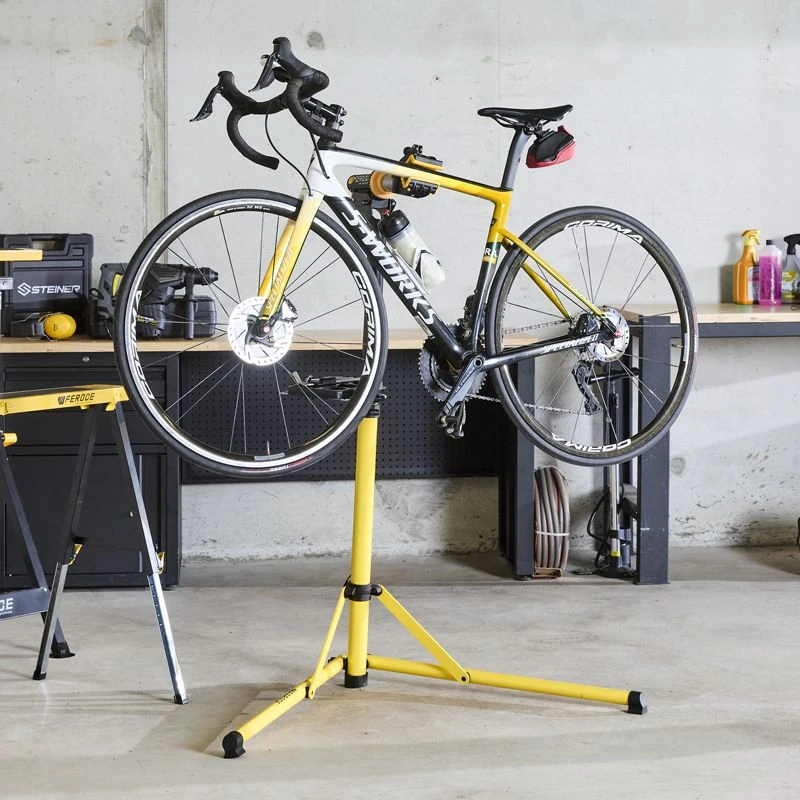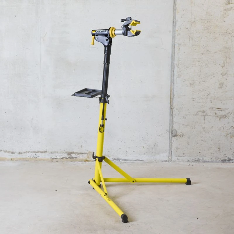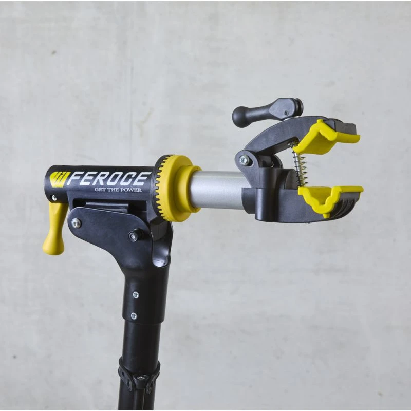 Ce pied d’atelier d’une grande stabilité, bénéficiant d’une hauteur de travail ajustable de 100 à 160 cm, a spécialement été conçu pour l’entretien et la réparation de votre vélo. Grâce à sa conception compacte, légère et pliable, il pourra être transporté partout, en toute simplicité. Équipé d’une mâchoire de blocage avec revêtement caoutchouc et réglable sans outil sur 360° afin de pouvoir intervenir sur le vélo aisément sous tous les angles, il vous évitera tout travail dans des positions inconfortables. Le produit est livré avec une tige télescopique qui vous permettra d’immobiliser le guidon pour un maximum de confort. Son plateau support à dégagement rapide avec zone magnétique, viendra compléter l’équipement pour un maximum de praticité et toujours disposer de vos outils et pièces détachées à portée de main.