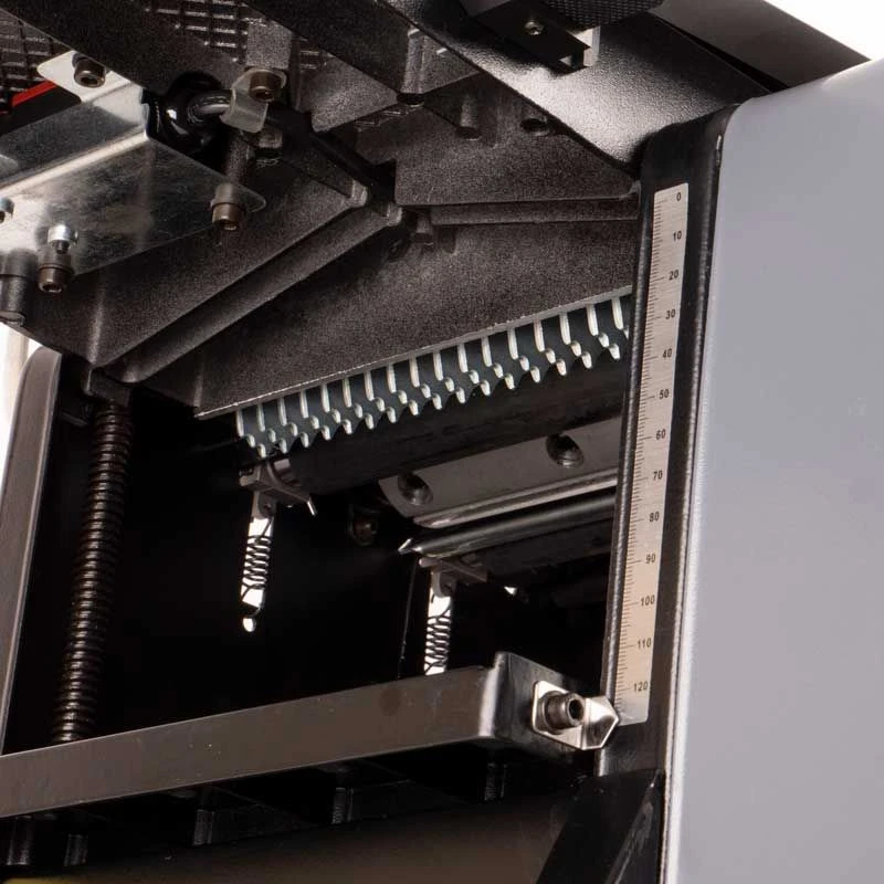 Et pour toujours plus de sécurité, son moteur dispose d’un disjoncteur thermique et d’un interrupteur d’arrêt « coup de poing » à manque de tension. Son extracteur de copeaux vous protégeant du bloc lames en toute circonstance, assurera également l’activation des micro-switch de sûreté lors du changement de mode.