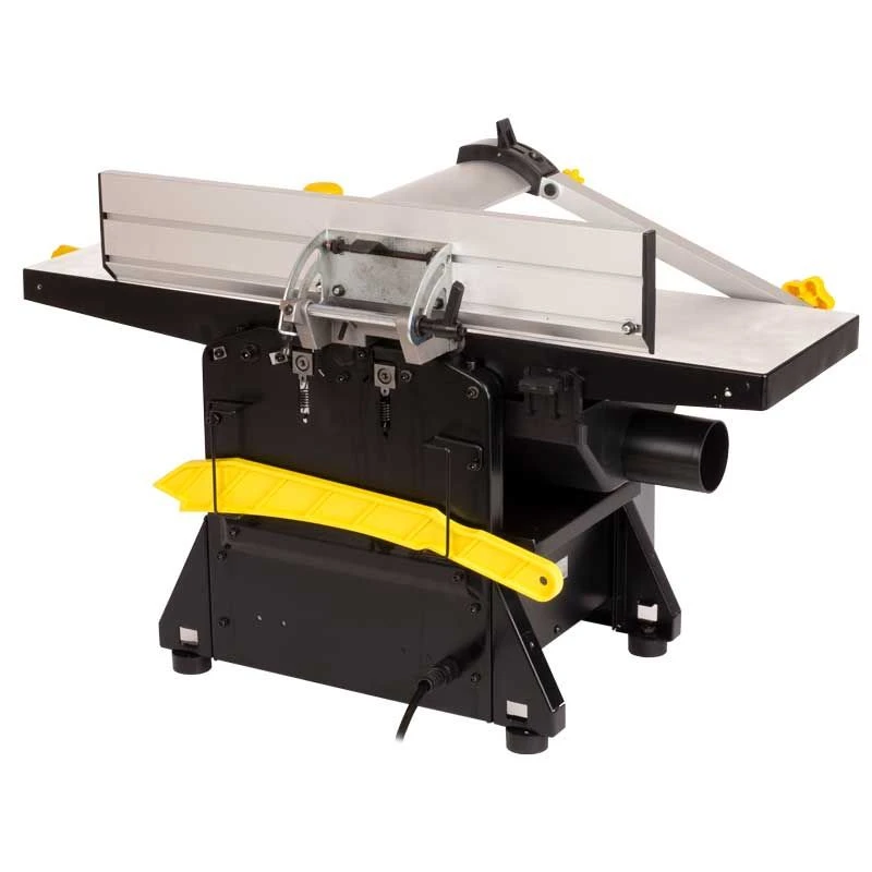 Grâce à sa construction compacte et robuste pour seulement 23Kg, ce combiné raboteuse-dégauchisseuse de 1250W pourra facilement être transporté ou utilisé à l’atelier sur votre établi. Son guide de coupe et sa table supérieure en fonte d’aluminium parfaitement plane vous garantiront un dégauchissage optimal et une bonne planéité. Doté de 2 fers HSS, il vous garantira un travail aisé et d’une grande précision. Ses pieds en caoutchouc limiteront les vibrations et assureront ainsi une bonne stabilité durant les passes de rabotage et de dégauchissage. Bras de déport de protection de lame réglable sans outil et guide de coupe inclinable de 90° à 135°.