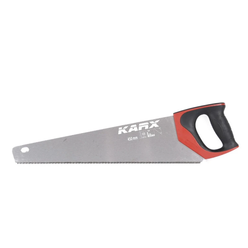 Scie pour travaux de menuiserie. 7 dents/pouce, denture trempée et 2 angles de coupe.