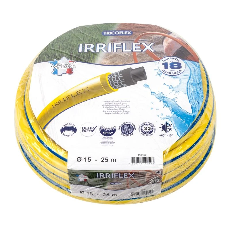 Le tuyau PVC IRRIFLEX de la marque TRICOFLEX Ø15mm 25m distribué par Bricolagedirect.com est un tuyau multicouche, souple, flexible, avec revêtement résistant aux UV et fabriqué en France.