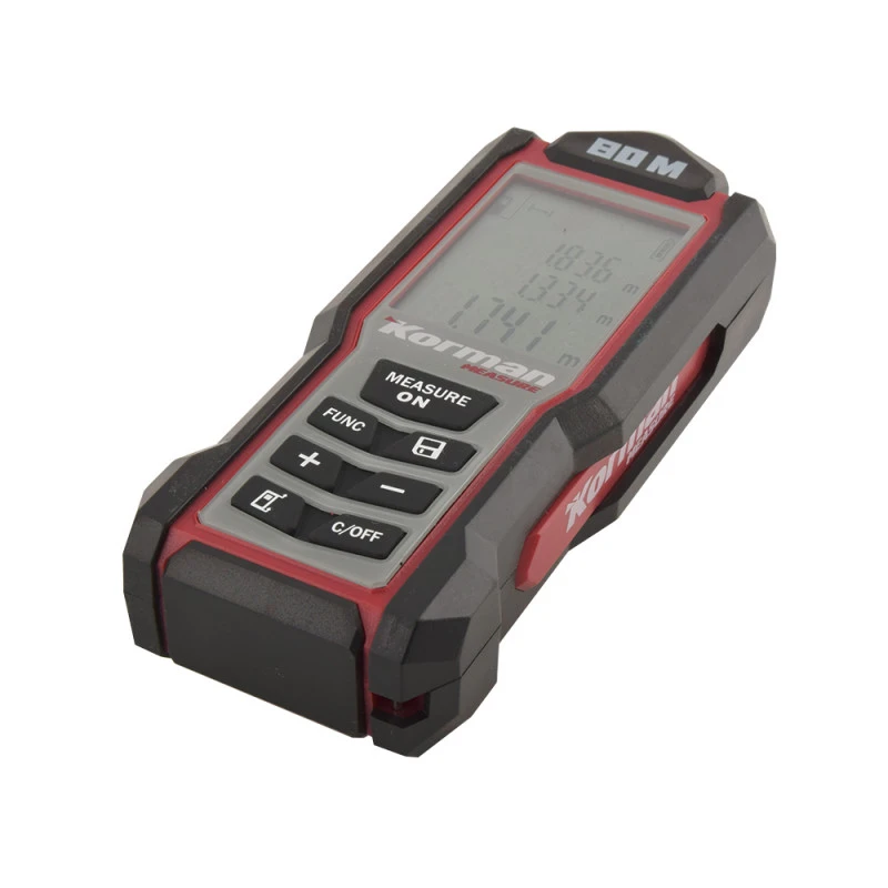 Qualitatif, précis et robuste grâce à son revêtement caoutchouc « soft grip », ce télémètre laser dispose des nombreuses fonctionnalités majeures utilisées dans le bâtiment comme la mesure indirecte par le théorème de Pythagore, les additions et soustractions ainsi que les mesures de superficie et de surface.
