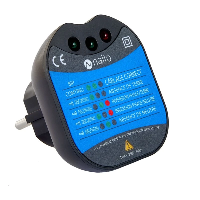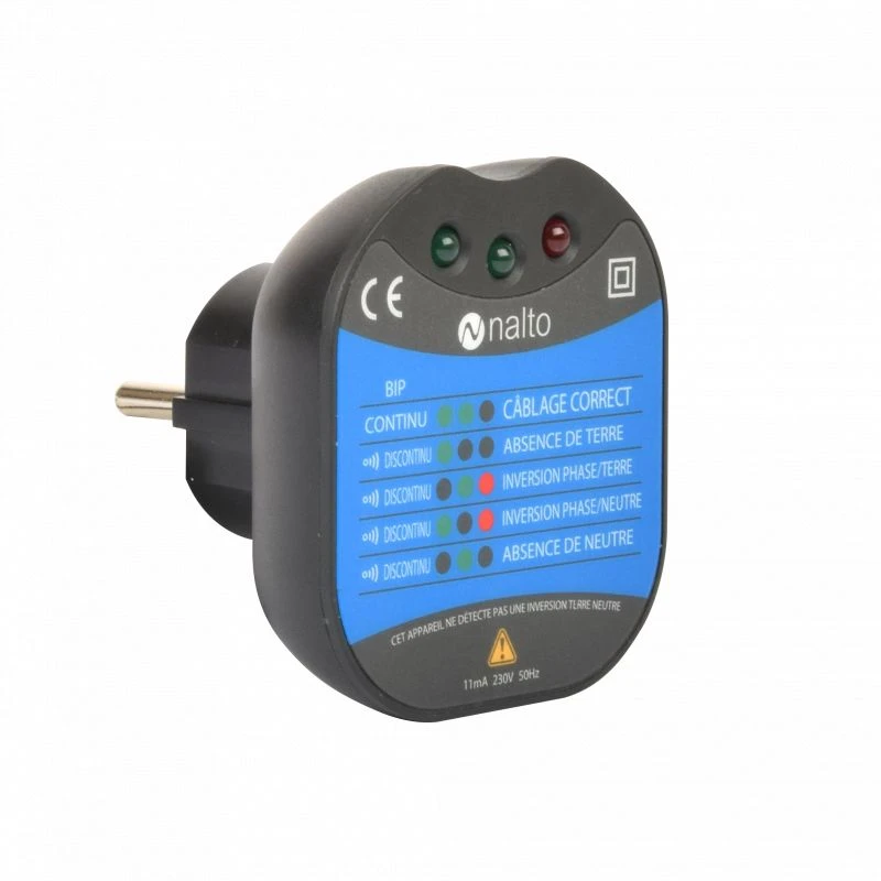 Simple d’utilisation et efficace, ce testeur de prise permet de valider le câblage de vos prises 2P+T 230V. Les diodes lumineuses vous indiquent le type d’anomalie dĂ©tectĂ©e.
