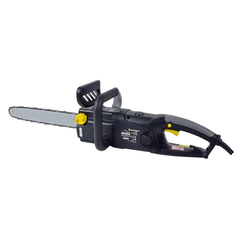 Cette tronçonneuse électrique Steiner est équipée d’un puissant moteur de 2400W avec disjoncteur de protection thermique intégré. Livrée avec un guide et une chaîne Oregon de haute qualité, vous bénéficierez d’une longueur de coupe allant jusqu’à 406mm vous permettant ainsi d’entretenir vos arbres et arbustes mais aussi de débiter votre bois de chauffage ou de réaliser vos travaux de menuiserie. Le graissage automatique de la chaîne et le réglage de sa tension sans outil vous offriront une plus grande facilité et rapidité d’utilisation. Interrupteur de sécurité à double contact, bouclier frein de chaîne et arrêt instantané, dispositif anti-débranchement, griffe d’abattage métallique, tout autant d’arguments pour une sécurité optimale et un plus grand confort d’utilisation.